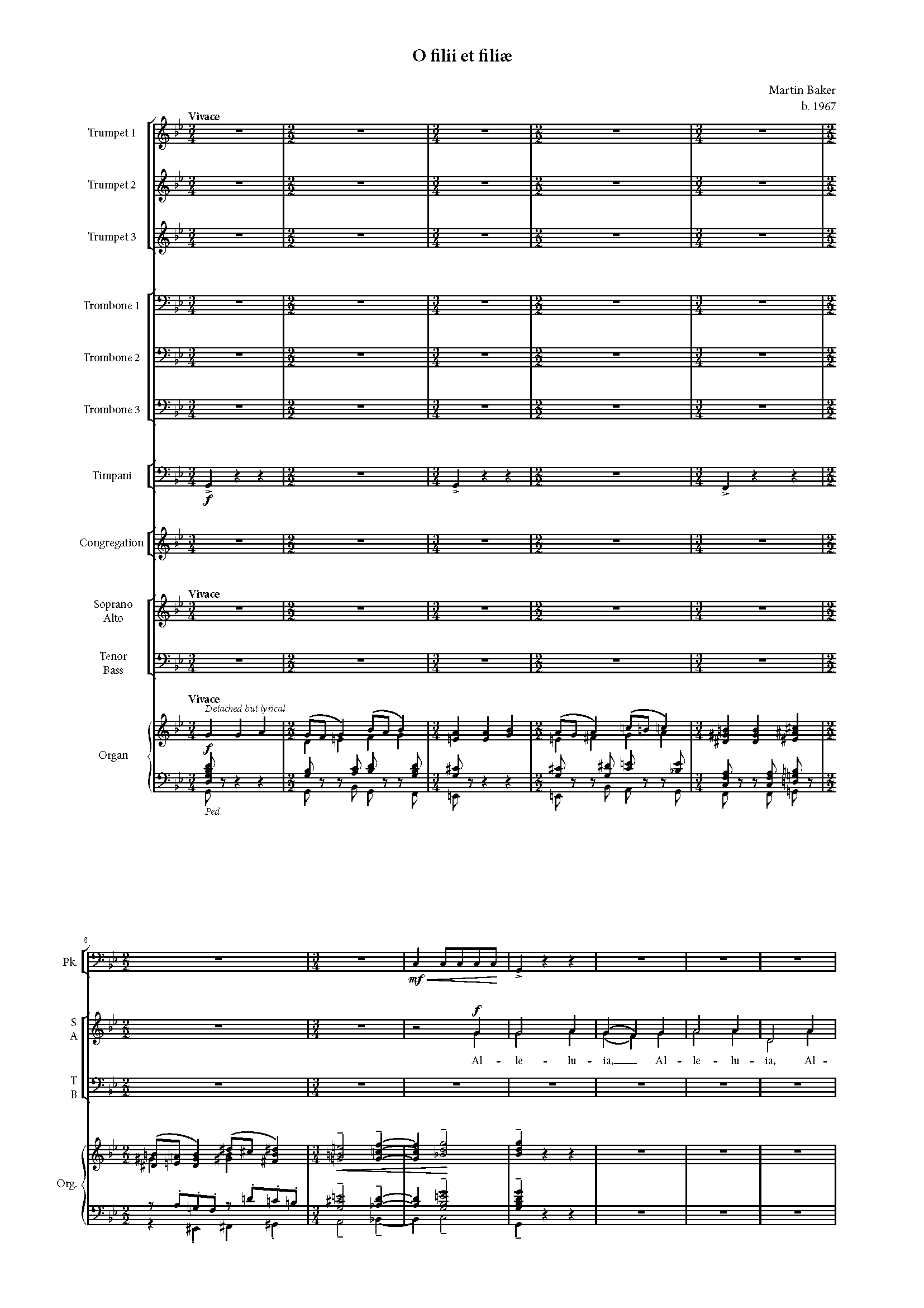Martin Baker’s arrangement of O filii et filiæ can be performed with organ accompaniment, or with organ, three trumpets, three trombones and timpani, via the purchase of this set of parts. Please note that the organ part slightly differs in the version played with the instruments. In this pack of parts there is one copy of each of the following: